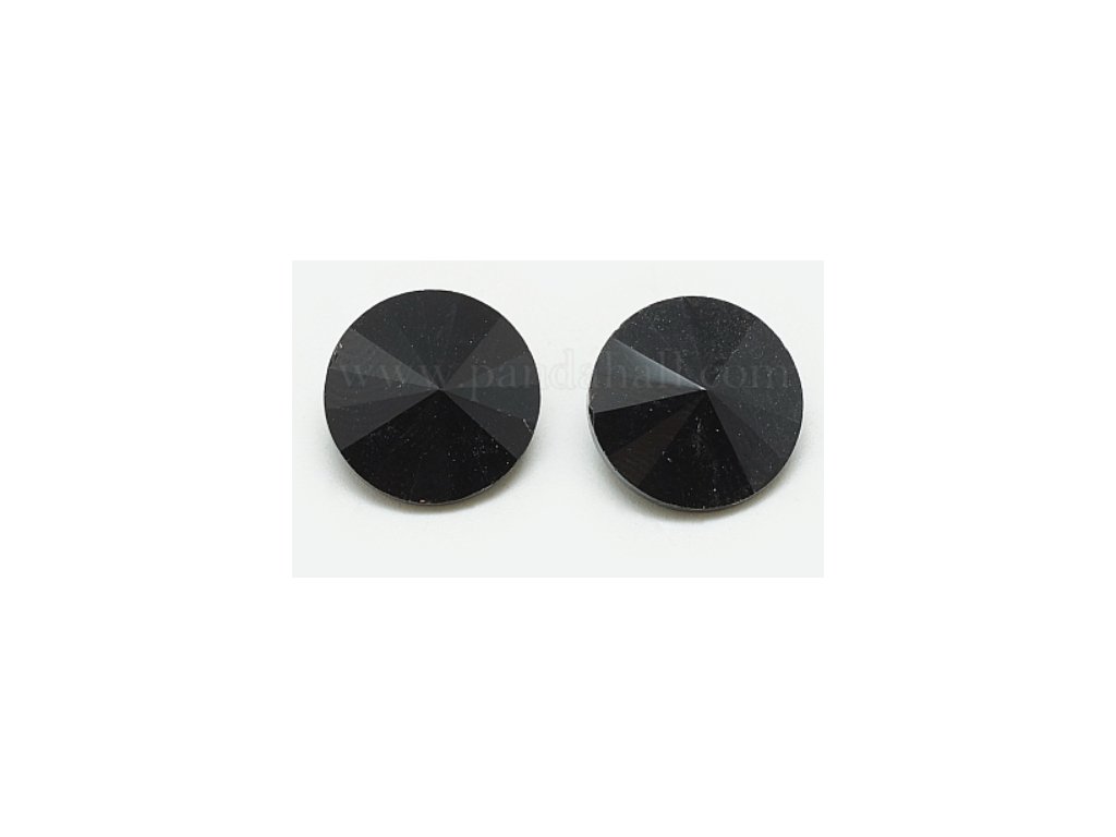 Rivoli - skleněný kamínek broušený do špičky, barva černá, průměr 12 mm