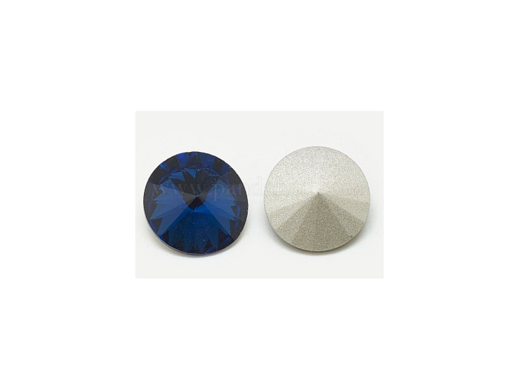 Rivoli - skleněný kamínek broušený do špičky, barva tmavě modrá, průměr 12 mm