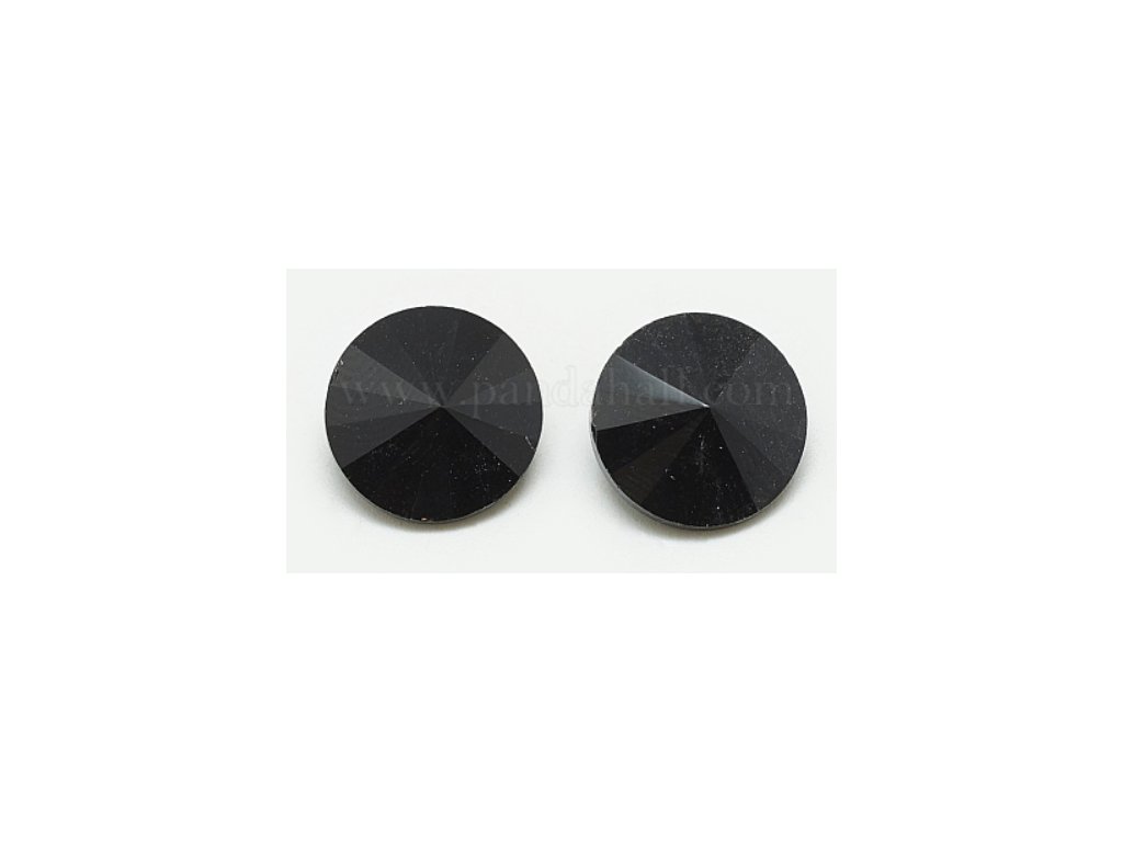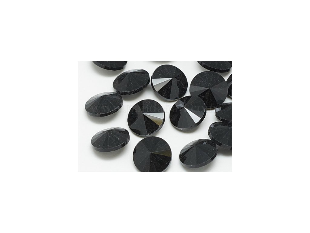 Rivoli - skleněný kamínek broušený do špičky, barva černá, průměr 14 mm