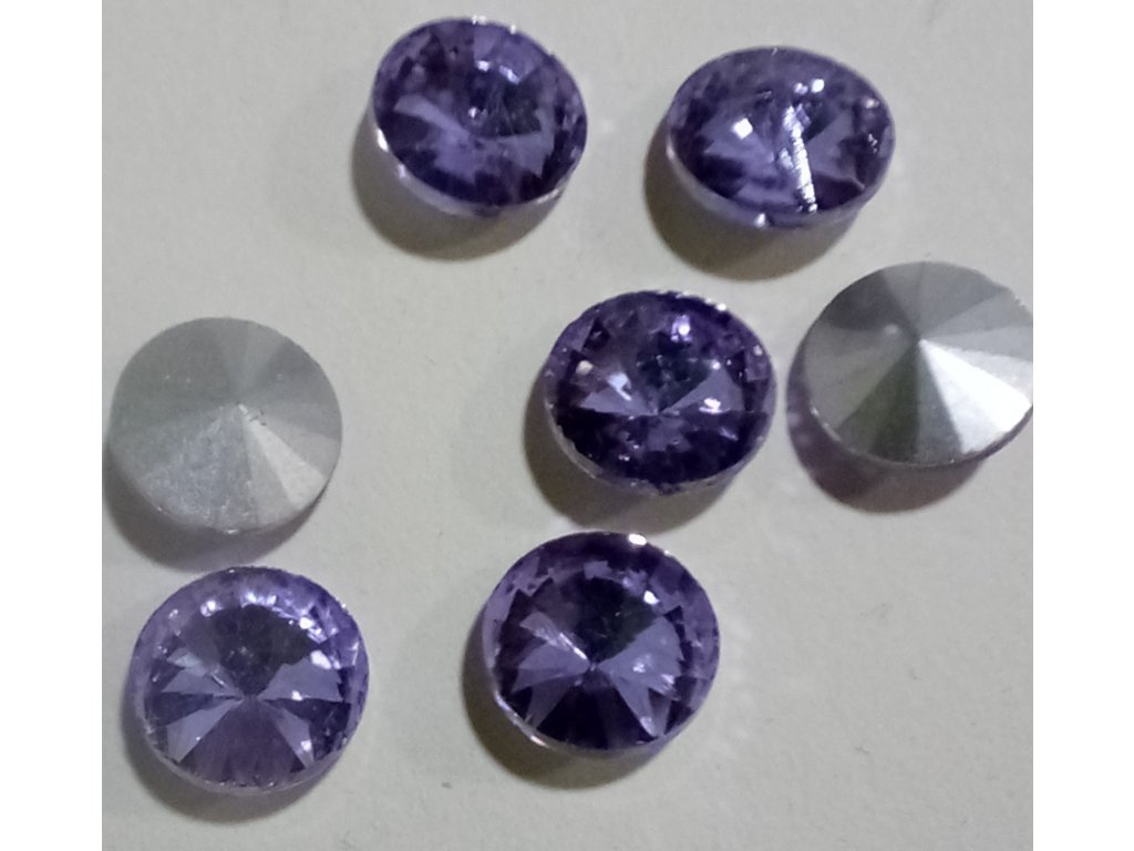 Rivoli - skleněný kamínek broušený do špičky, barva Tanzanit - světle fialová, průměr 14 mm