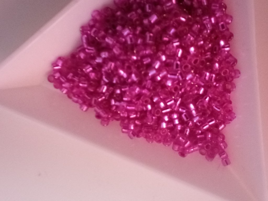 Skleněný rokail, barva: sv.vínová se stříbrným průtahem