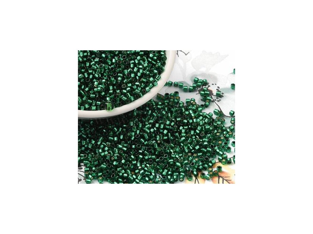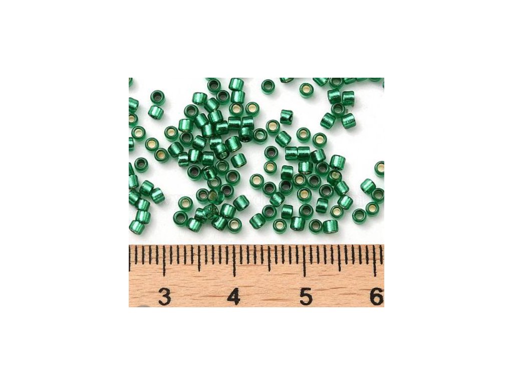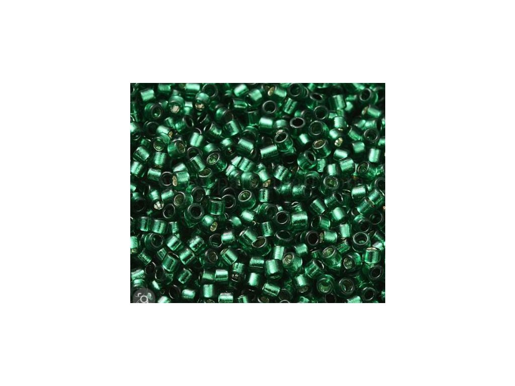 Skleněný rokail, barva: zelená, stříbrný průtah
