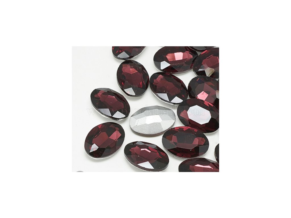 Kabošon - skleněný kamínek broušený, barva tmavá vínová, 13x18mm