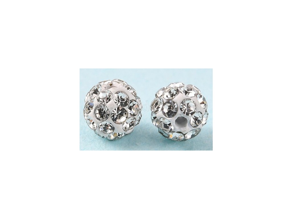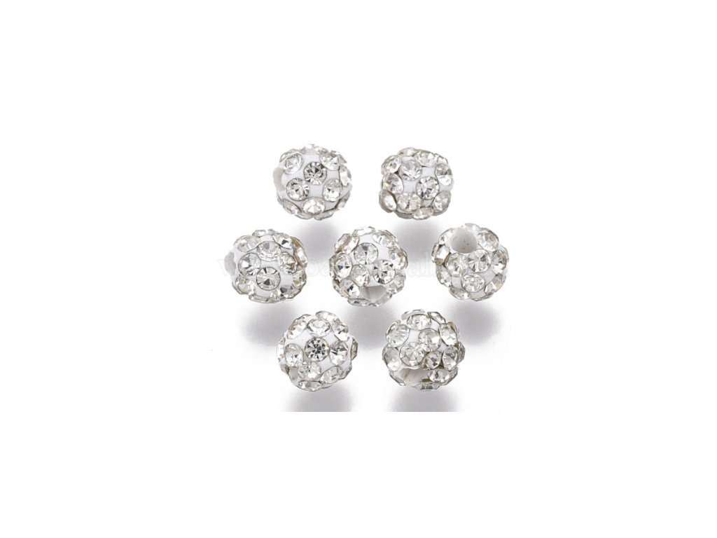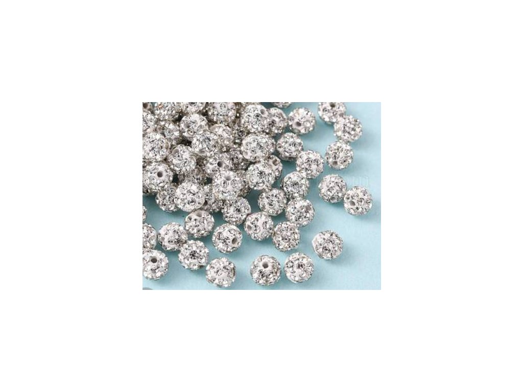 Elegantní štrasový korálek o velikosti 4 mm, vyrobený z polymerové hmoty a osazený drobnými broušenými kamínky v krystalově stříbrné barvě s bílým jádrem. Díky svému třpytivému povrchu dodá každému šperku nebo dekoraci luxusní vzhled. Průvlek o velikosti 1 mm umožňuje snadné navlékání na elastické šňůrky, lanka nebo tenké řetízky.